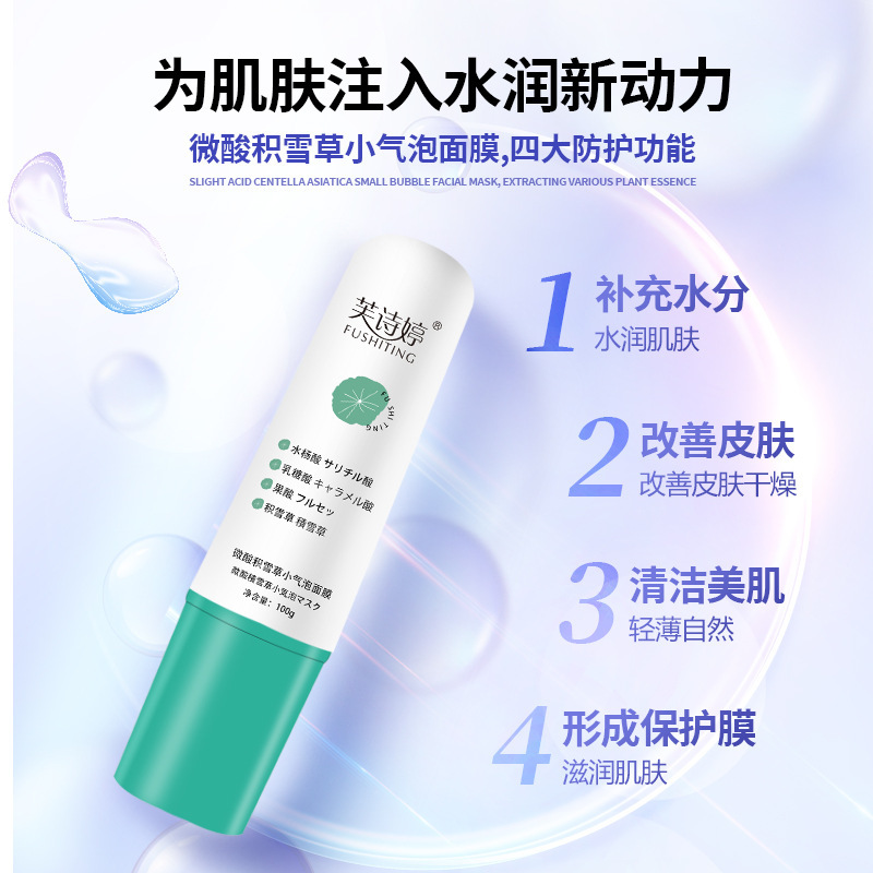 | nameOriginal | Fu Shiting acid Centella asiatica small bubble mask deep cleansing blackhead acne removing foaming mask cleaning mud film |
