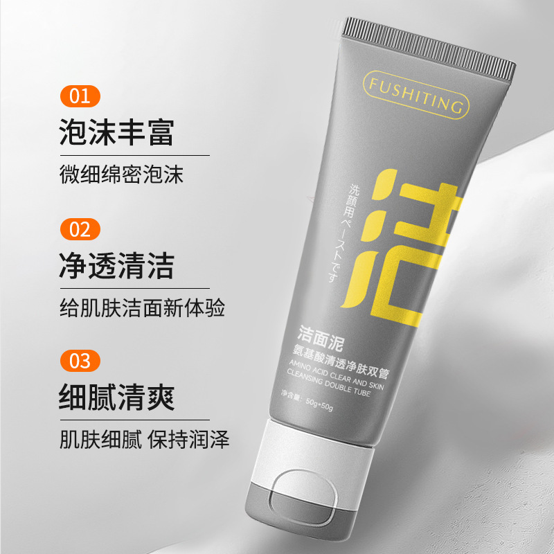 | nameOriginal | Fu Shiting Clear Skin Cleansing Double Tube Facial Cleanser Deep Cleansing Blackhead Removal White Mud Plaster Double Facial Cleanser |