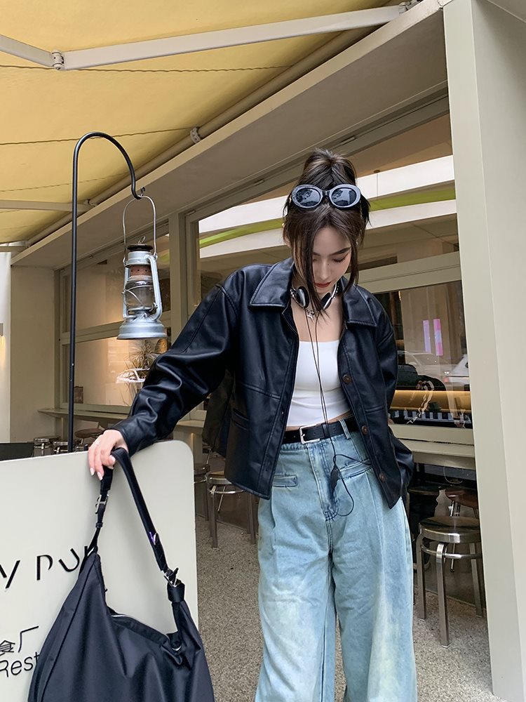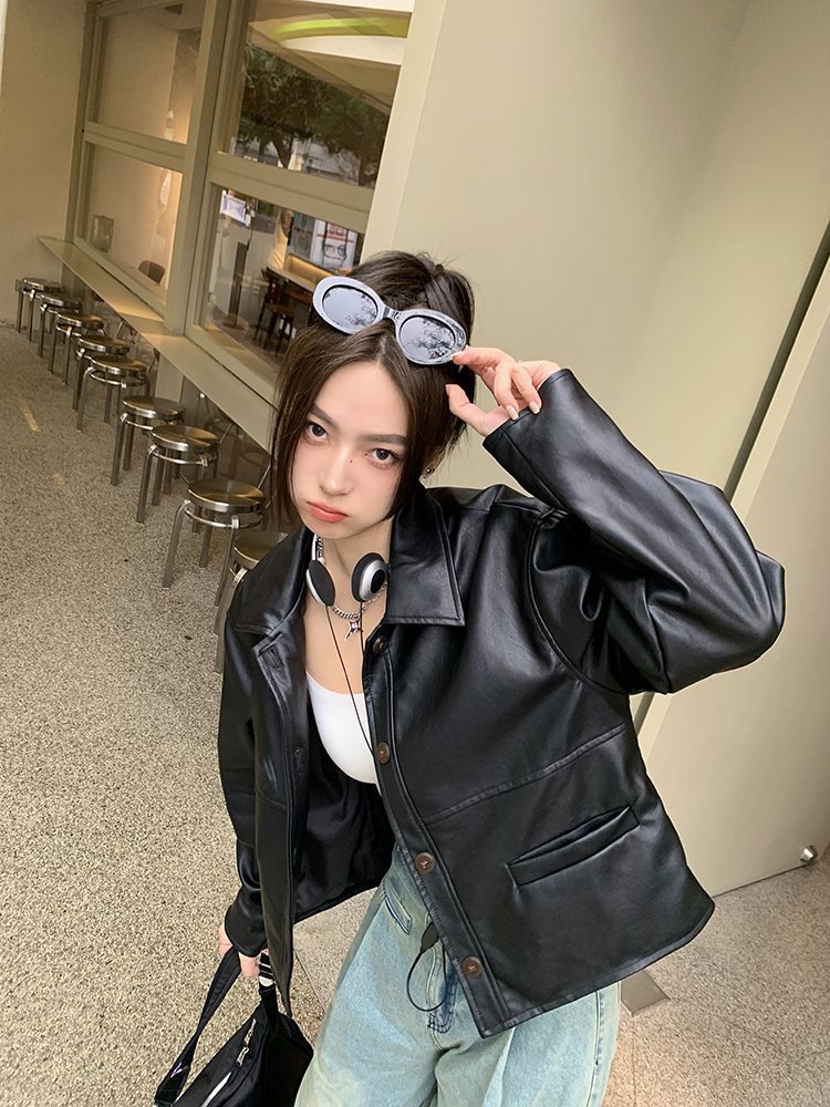 | nameOriginal | FU South Korea 2024 Spring and Autumn New Imitation Sheepskin Jacket Motorcycle Small Short Black pu Leather Jacket for Women |