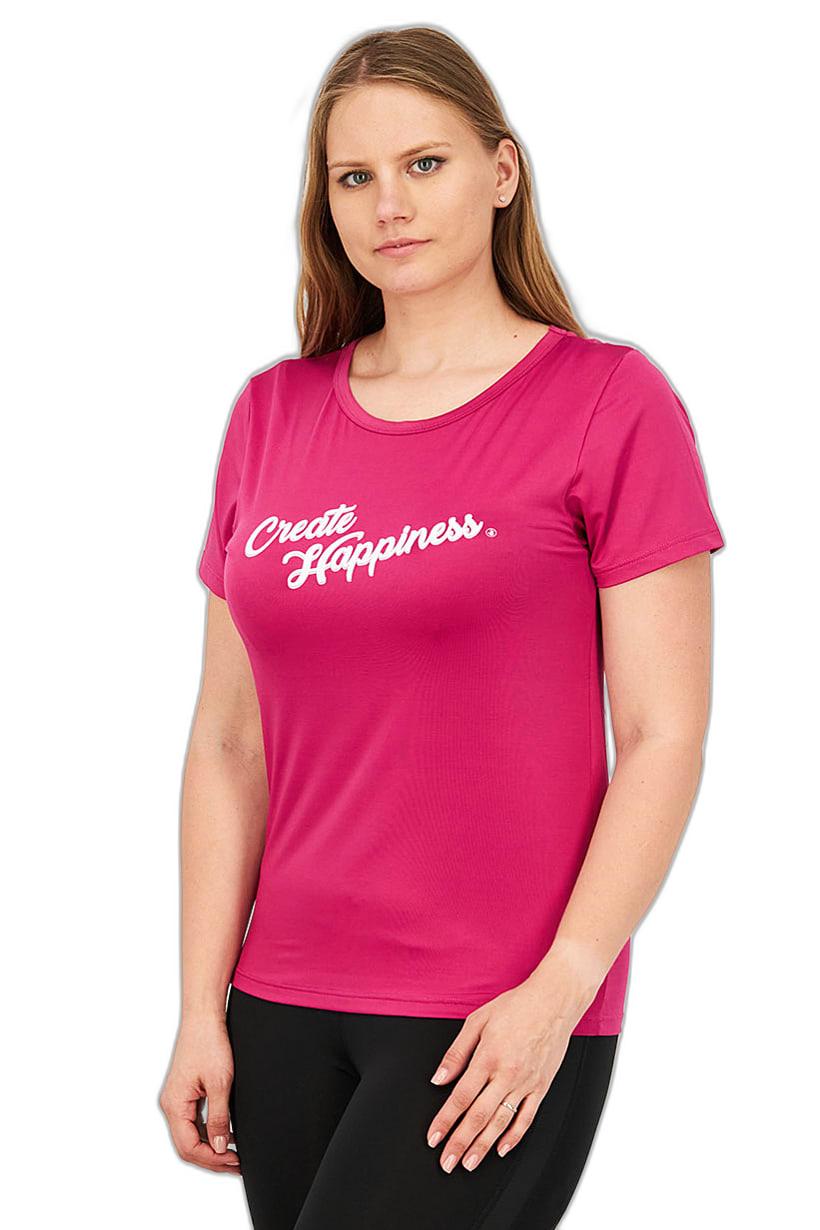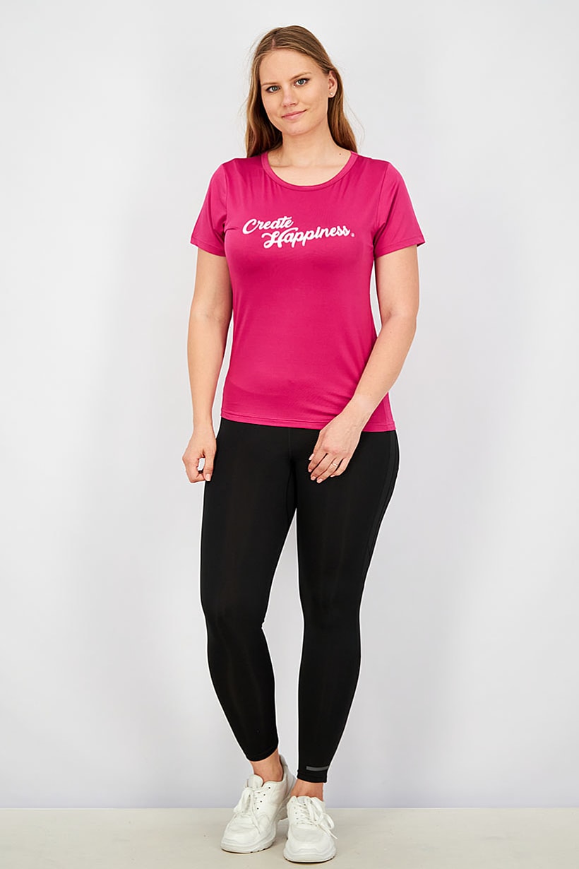 Women Sportwear Fit Short Sleeve Running T-shirt, Fuchsia Pink and White