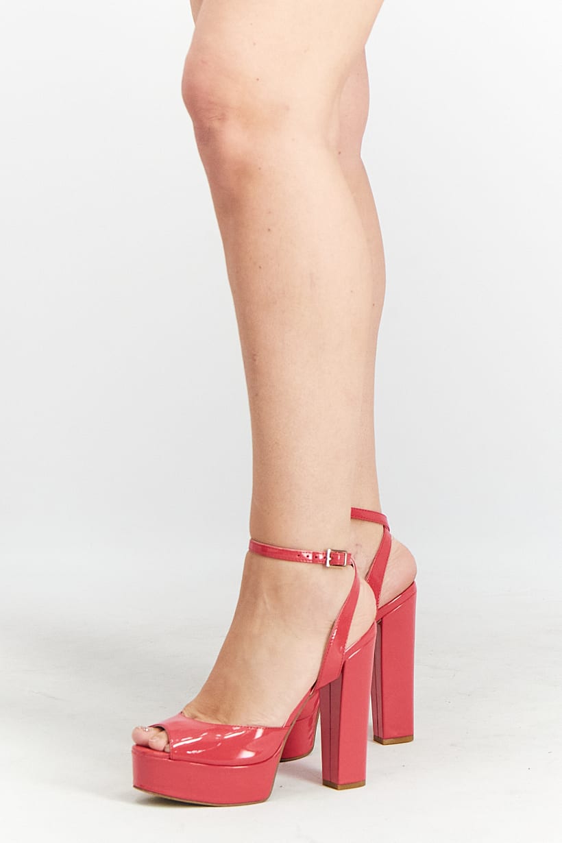 | descriptionOriginal | Heel Height : 5.25" / 13.3 cm, Heel Style : Chunky heel, Ideal For : Women, Shoe Closure : Adjustable buckle closure, Sole Material : Synthetic sole, Toe Style : Peep toe, Occasion : Partywear, Shoe Material : Synthetic Leather, Color Family : Pink, |