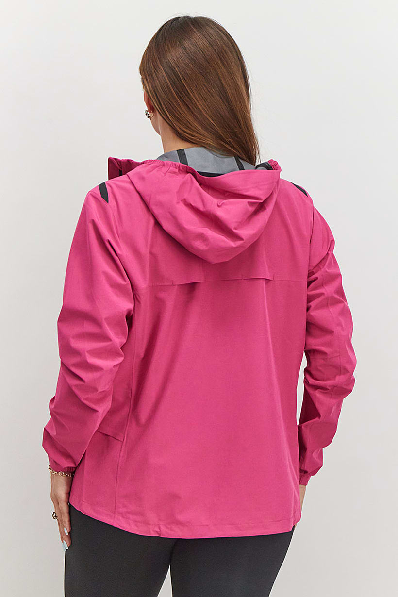 Fuchsia Red Women’s Hooded Training Jacket with Long Sleeves.