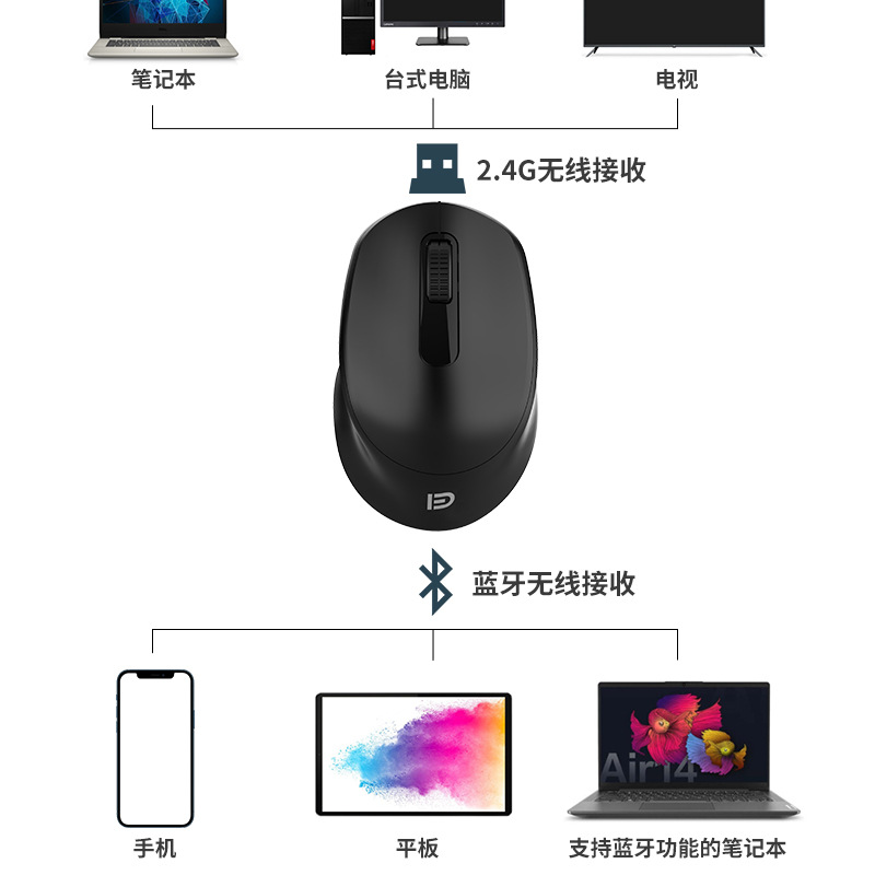 | nameOriginal | Fude M701Y wireless Bluetooth Dual-mode mouse notebook desktop Bluetooth connection hand mute mouse |