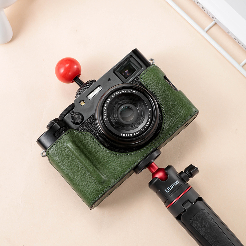 Fuji X100vi camera bag leather case X100V X100S X100T camera protective case half sleeve base hole