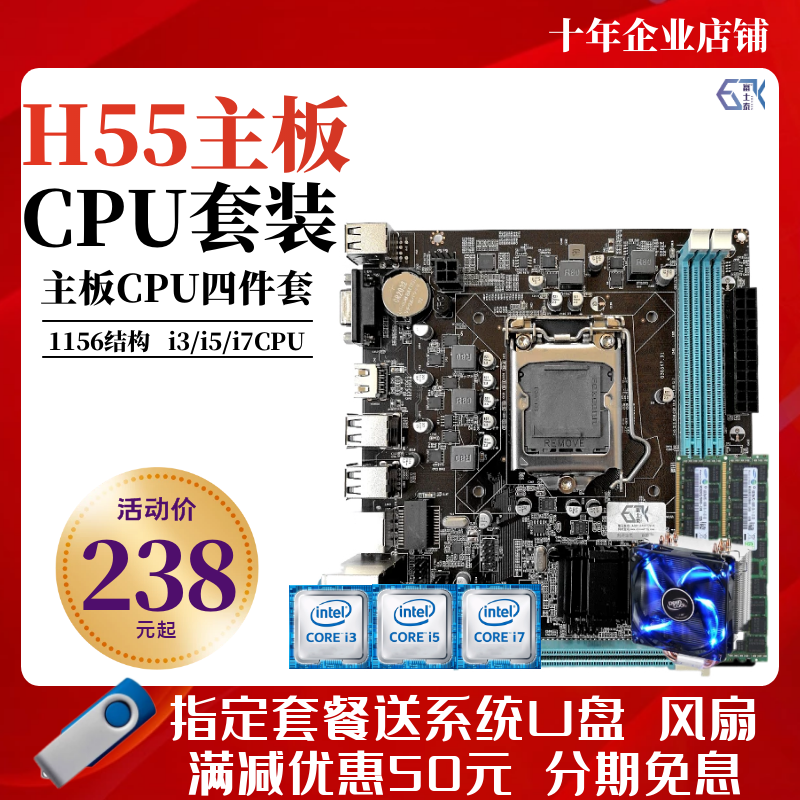 Fujitec's new H55 desktop computer motherboard CPU set 1156-pin Core i5 i7 860 four-piece set