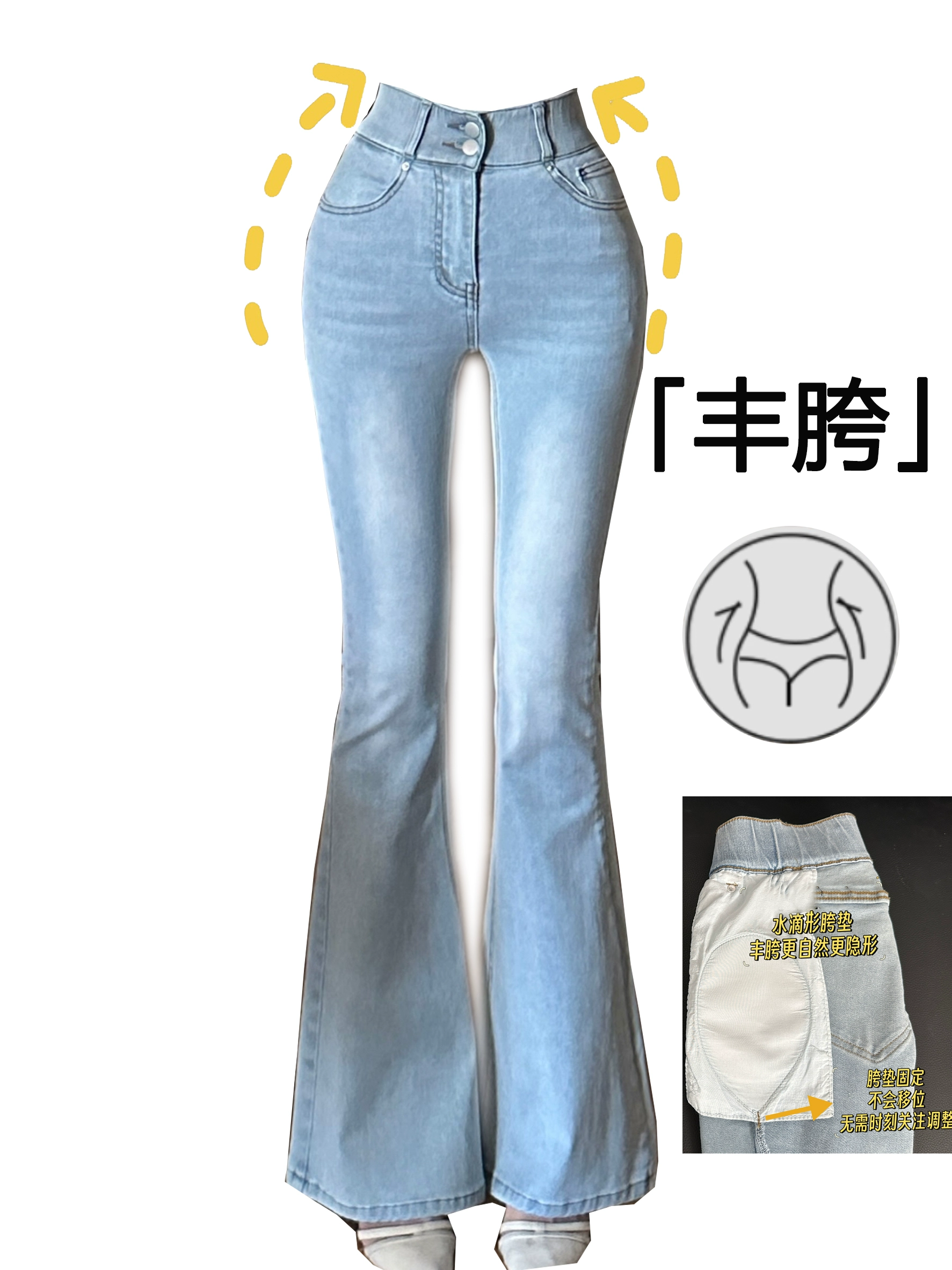 Full-crotch pure lustful buttocks double-button high-waist micro-flare pants