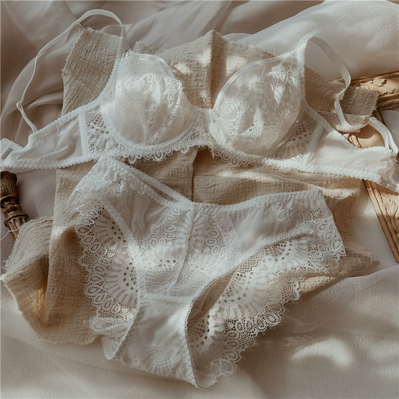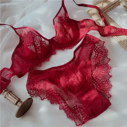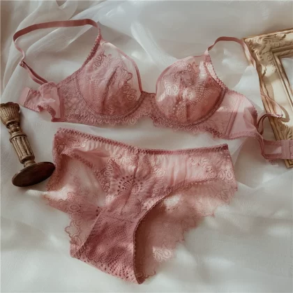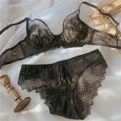 Full cup sexy lace gathered on the underwear to support the bra