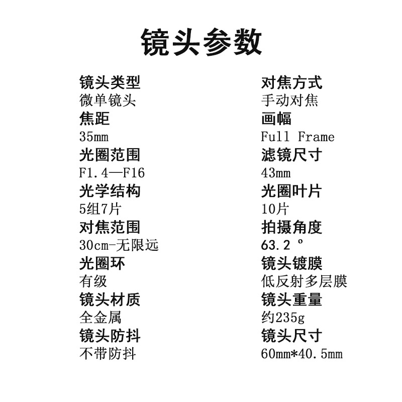 | nameOriginal | Full Frame 35mm F1.4 humanistic street sweeping lens suitable for Sony FE Port canon RF port Nikon Z port |