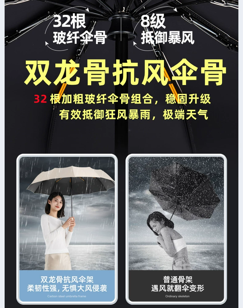 Fully automatic folding umbrella for men, large, reinforced, thickened, strong, wind-resistant, sunny or rainy, female sun umbrella, parasol