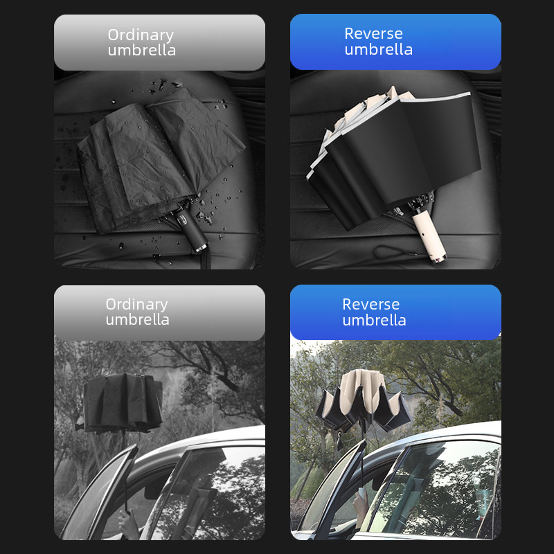 Fully Automatic Shrink Umbrella for Men and Women Sunny and Rainy Dual-Use Thickened Large Car Reverse Double Student Sunscreen UV