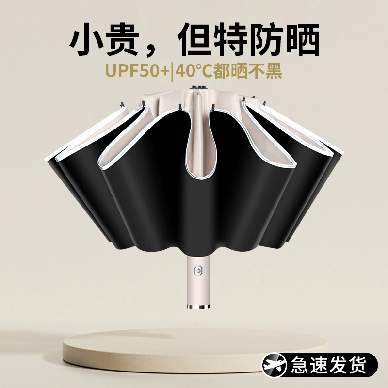 Fully automatic umbrella for men and women, folding portable sun umbrella, reinforced sunny or rainy day sun protection, heavy rain special sunshade