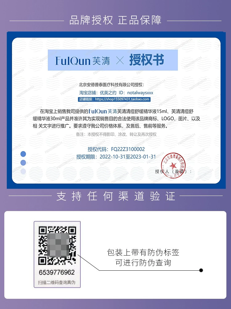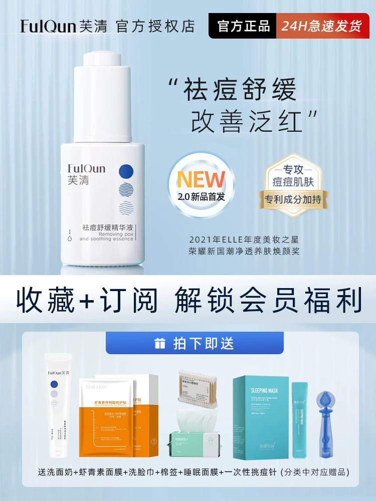 | nameOriginal | FulQun Anti-acne Soothing Essence, FulQun, fades redness, removes acne marks, controls oil, repairs and conditions facial acne, and is acid-free. |