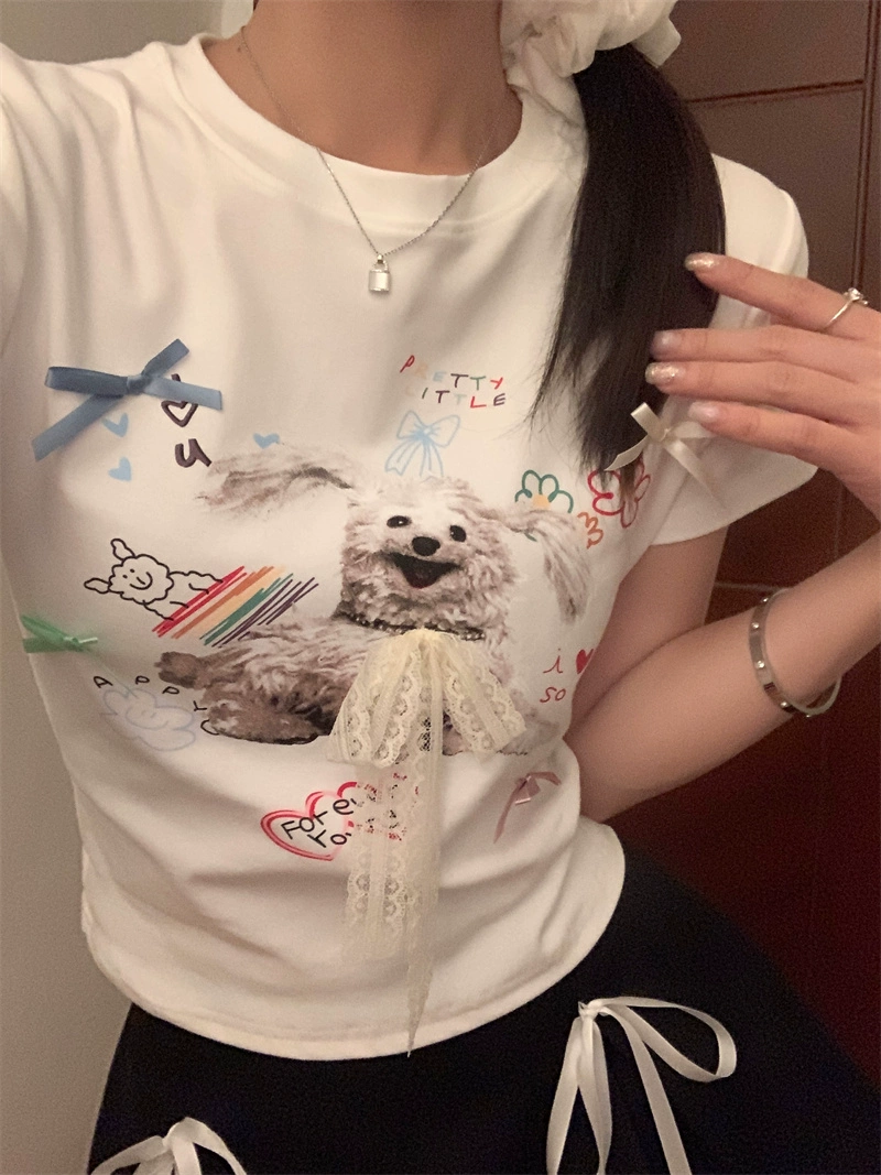 | nameOriginal | Fun printed short-sleeved T-shirt with high waist and three-dimensional bow |