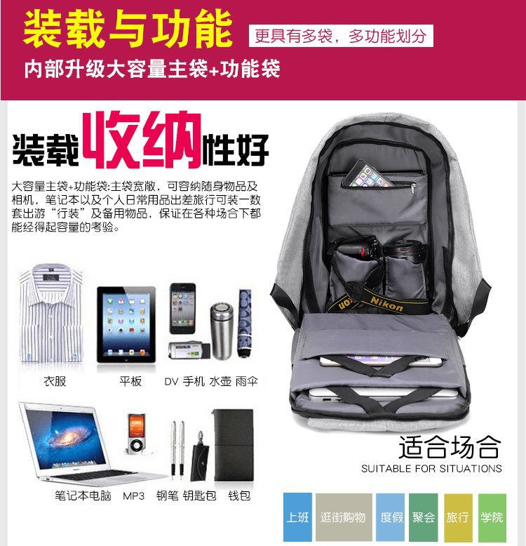 | nameOriginal | Function 15 Inch Anti-theft Travel Backpack Men's Large Capacity Business Computer Backpack Charging Backpack Male Student Schoolbag |