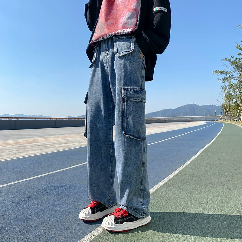 Functional large pocket denim trousers spring and autumn floor mopping workwear