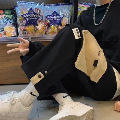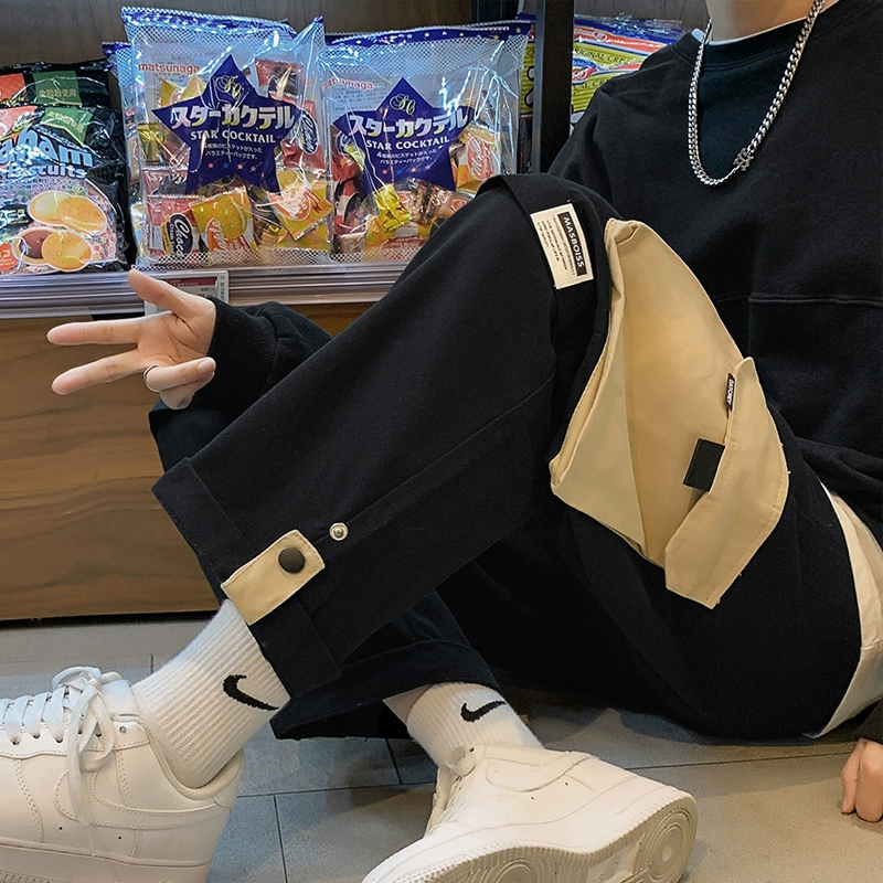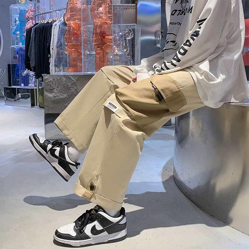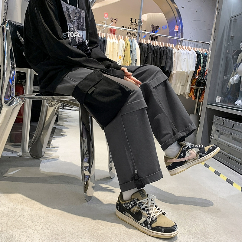 Functional Pocket Workers Pants Men’s Straight Design Sensing Triven National Tide Casual wide -leg pants feet Deduading Harn pants