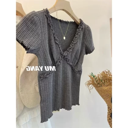 | nameOriginal | Fungus edge v-neck spring and summer niche lace top |