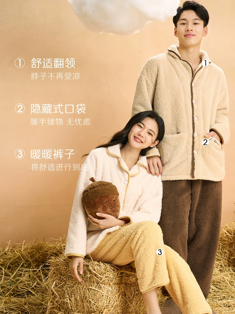 | nameOriginal | Funilai Couple Warm Pajamas Women's Long Sleeve Velvet Thickened Men's Autumn and Winter New Home Clothing Set |