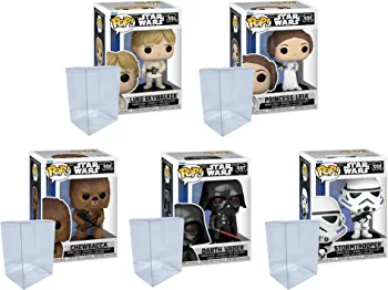 The Star Wars Classics Funko Pop Set of 5 with Protector Bundle is the ultimate collection for any Star Wars fan. This set includes five iconic characters from the original trilogy: Luke Skywalker, Princess Leia, Chewbacca, Darth Vader, and a Stormtrooper. Each vinyl figure is expertly crafted with intricate details that capture the essence of these beloved characters.