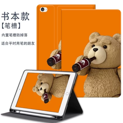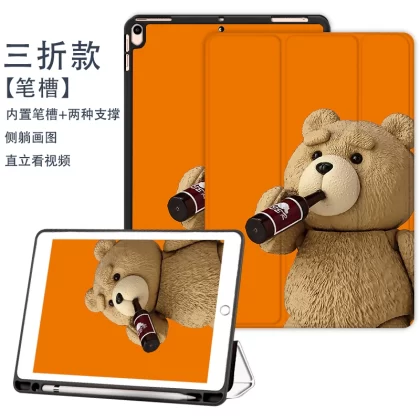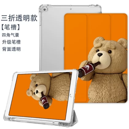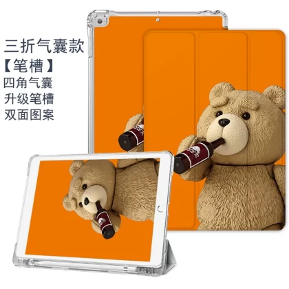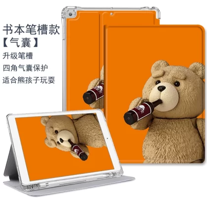 Funny and cute bear 2021 new pro11 protective case with pen slot tablet 10.2/10.5 inch air bag case 18/19ipad air4/3/2/1 tri-fold 5/6 apple 9.7 mini 65