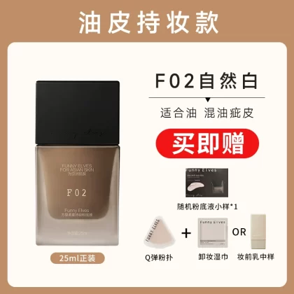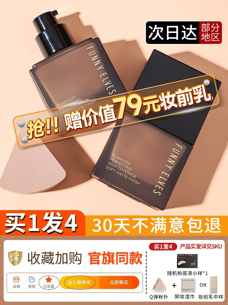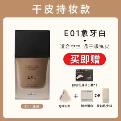 funnyelves liquid foundation square soft mist for women with long-lasting makeup dry mixed oily skin fe small square bottle new version authentic