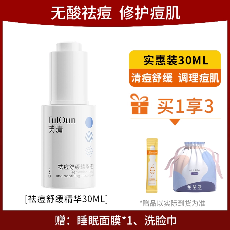 | nameOriginal | Fuqing anti-acne essence clears acne, soothes and fades acne marks, removes redness and swelling, controls oil, moisturizes, improves redness, repairs and is acid-free. |