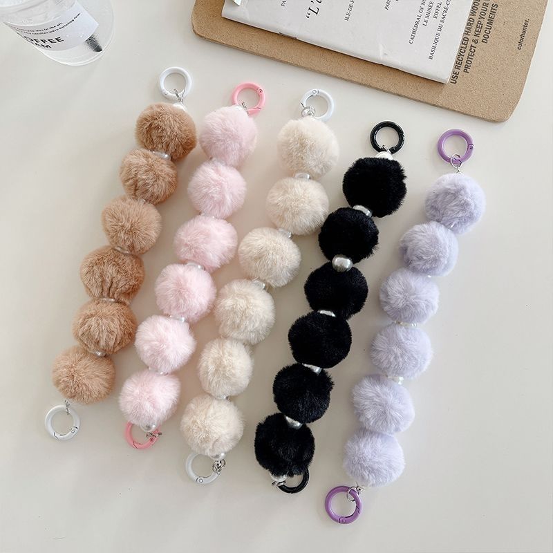 Fur ball mobile phone chain mobile phone bowl with plush ball autumn and winter plush pendant bag car key pendant short