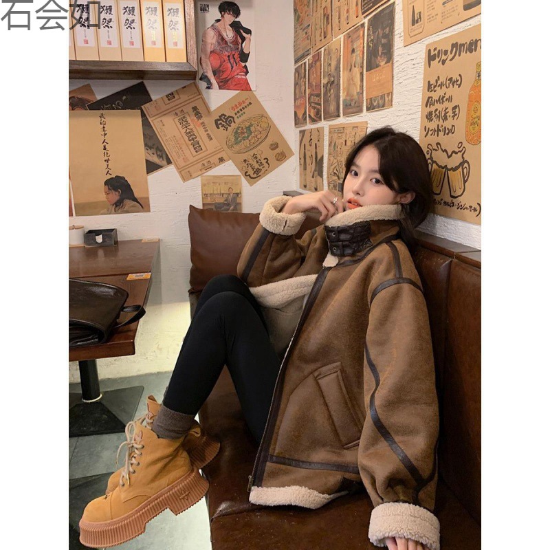 | nameOriginal | Fur coat women's lamb fur winter vintage motorcycle leather coat suede Maillard thickened |