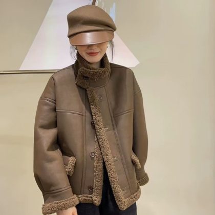 | nameOriginal | Fur integrated lambswool fur coat for women 2024 Winter new thickened retro stand collar short motorcycle jacket |