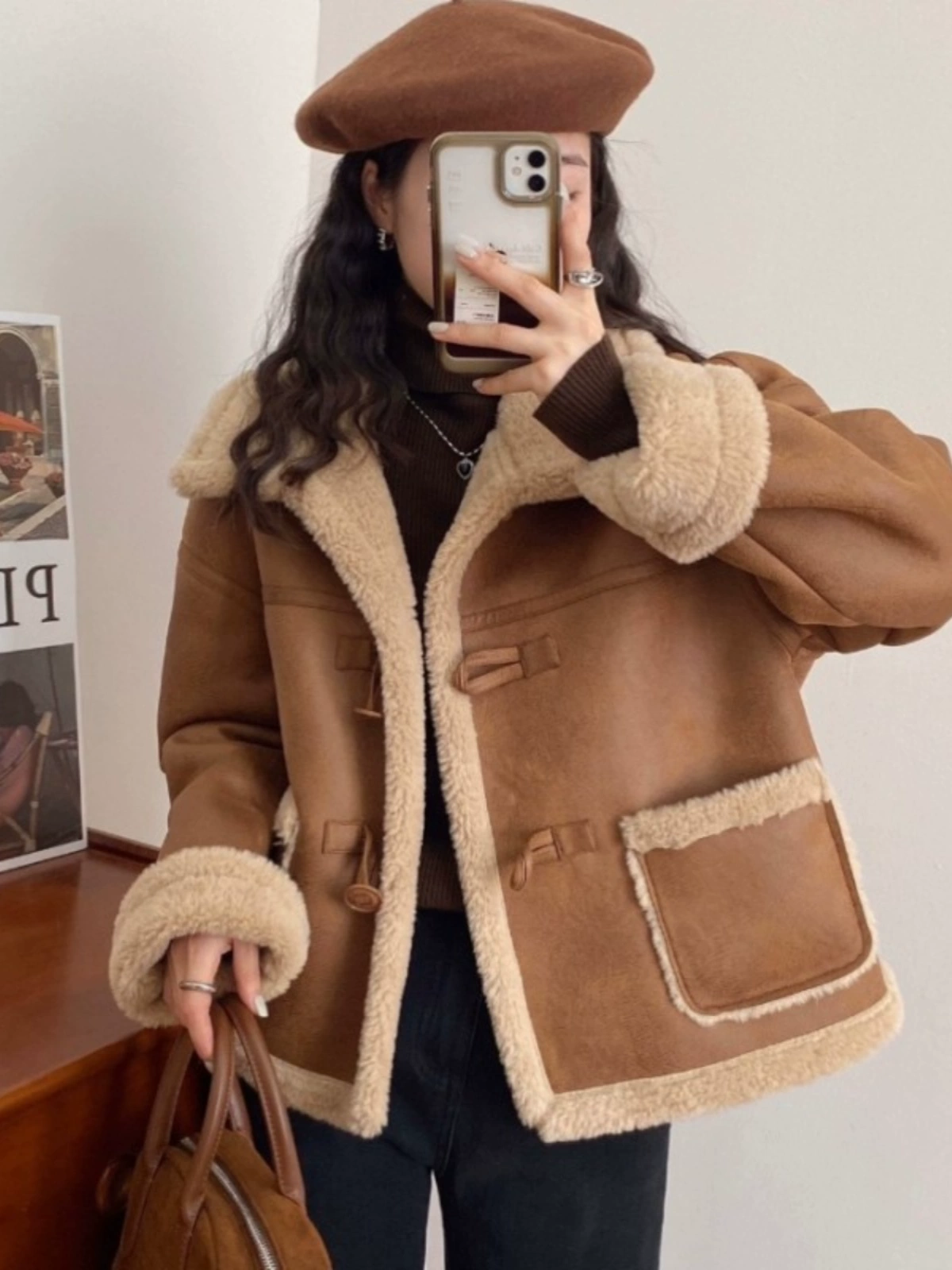 Fur -in -one explosion and velvet thickened locomotive jacket