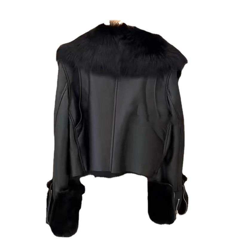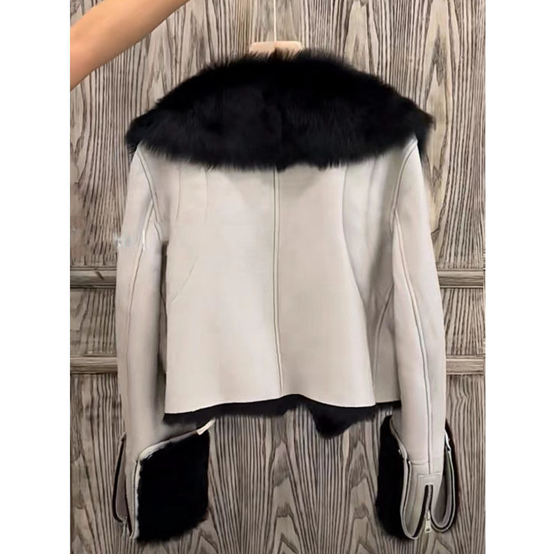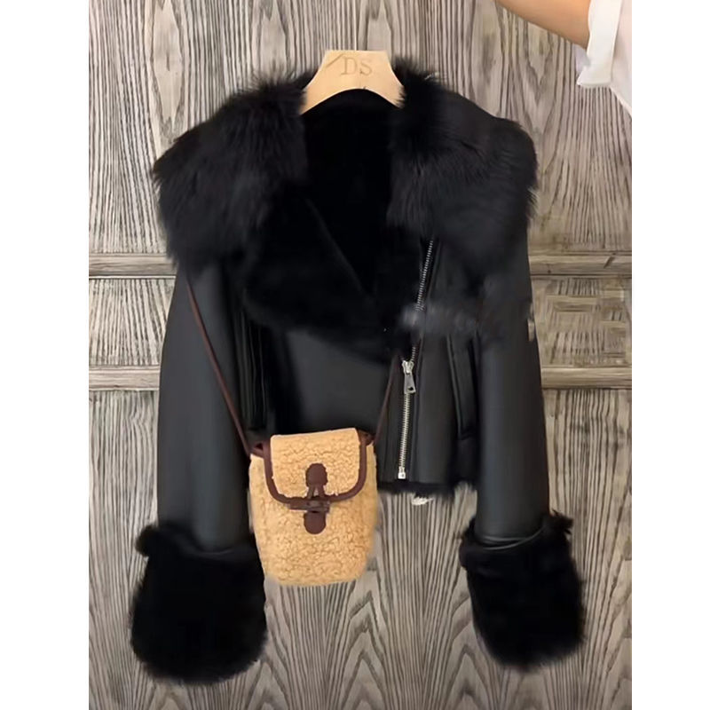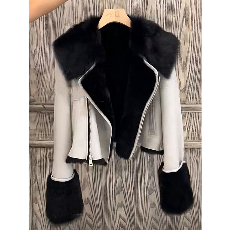 Fur stitching fur coat for women 2022 autumn and winter new young fur integrated motorcycle coat