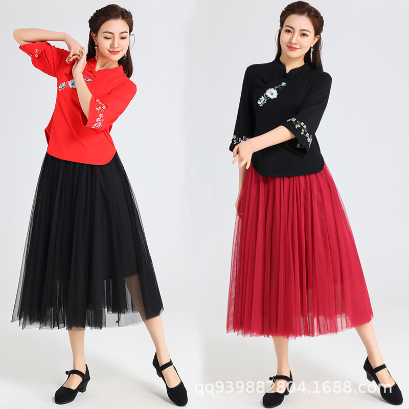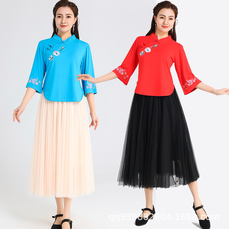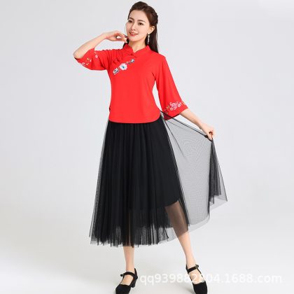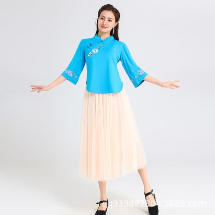 | nameOriginal | Fuwu Square Dance New 2024 New Chinese Embroidered Dance Suit Chinese Style Classical Dance Middle Sleeve Suit |