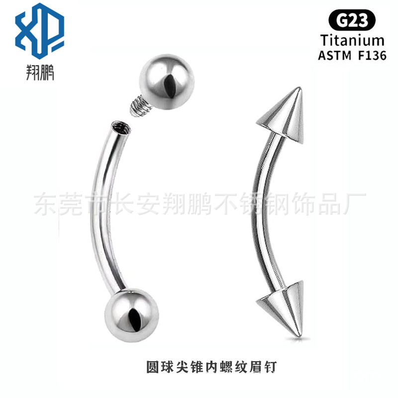 | nameOriginal | G23 double-headed titanium ball internal thread eyebrow nail F-136 internal tooth pointed cone curved rod ear studs body piercing tongue nail nipple nail |