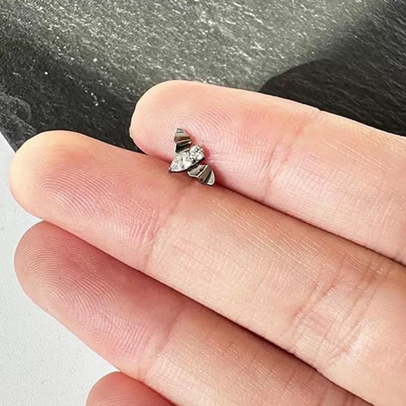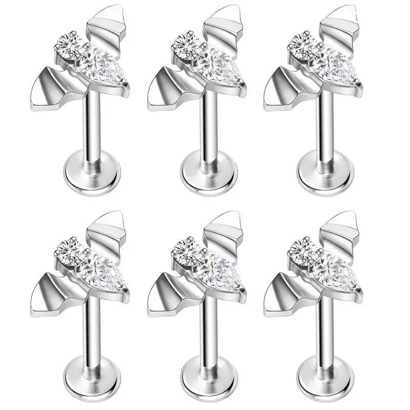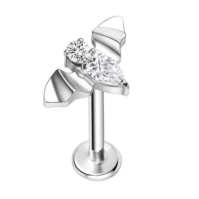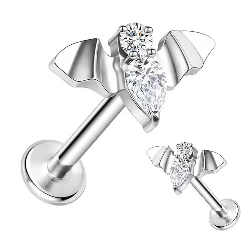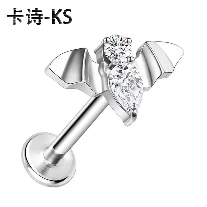 G23 titanium alloy bat earrings inlaid with zircon F136 titanium body piercing jewelry lip nails