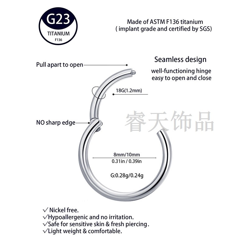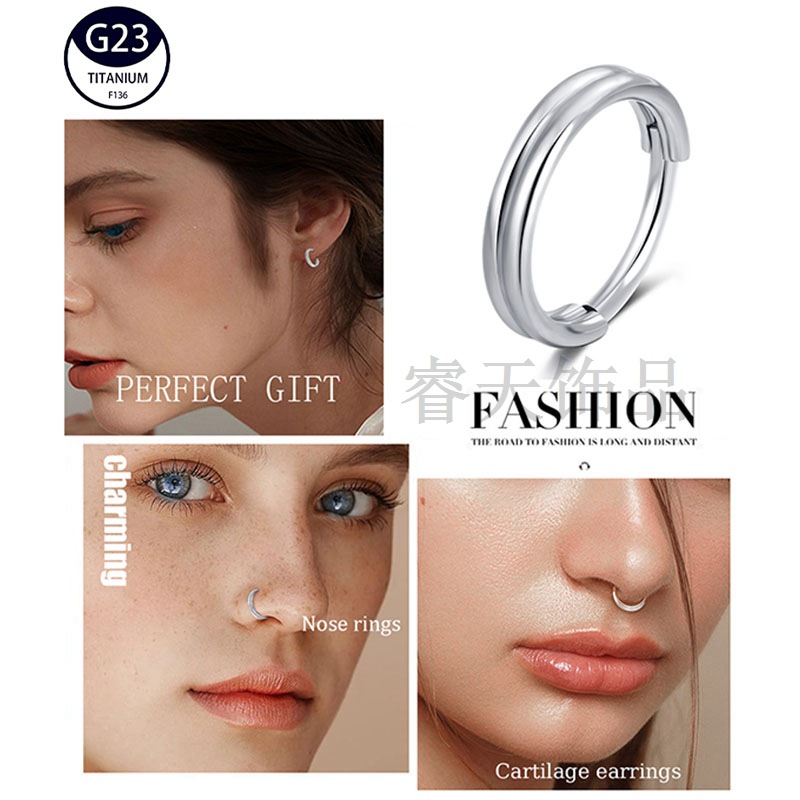 G23 titanium alloy closed female nose ring lip ring jewelry F136 Titanium double-layer ring ear bone nail cartilage puncture jewelry