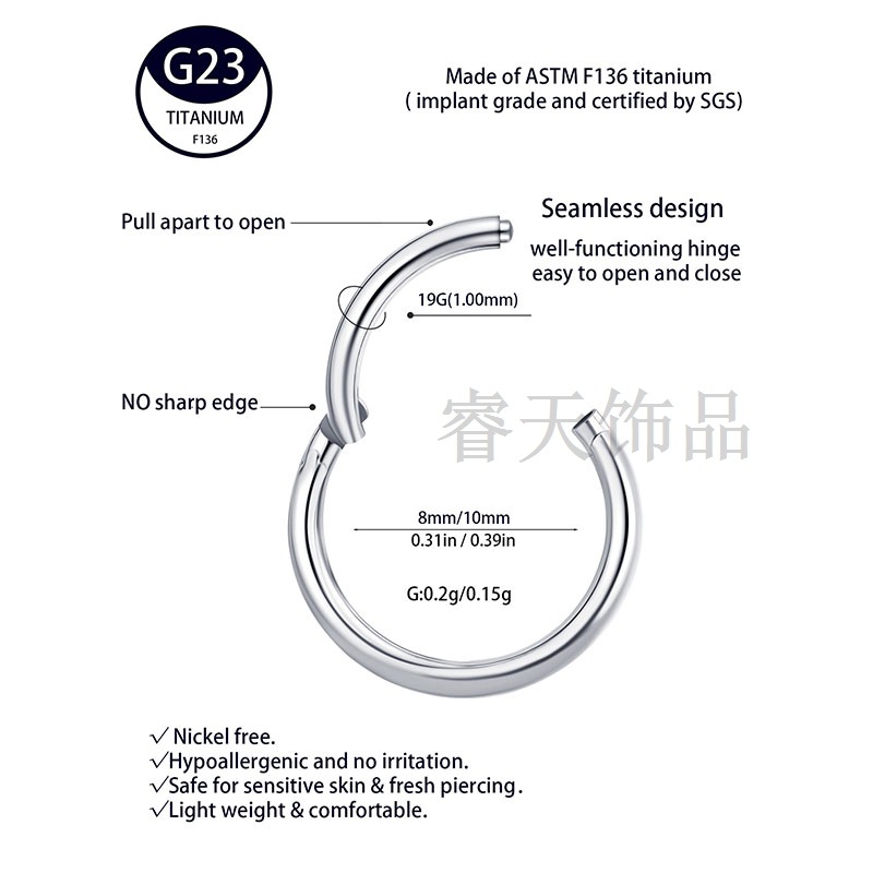 | nameOriginal | G23 titanium alloy closed lip ring nose ring female jewelry F136 titanium multi-color ring ear bone nail tongue ring puncture jewelry |