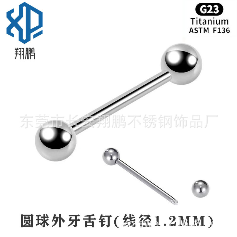 | nameOriginal | G23 titanium alloy double-headed ball outer tooth tongue nail F-136 titanium straight bar barbell ear Bridge ear stud tongue nail human body puncture |