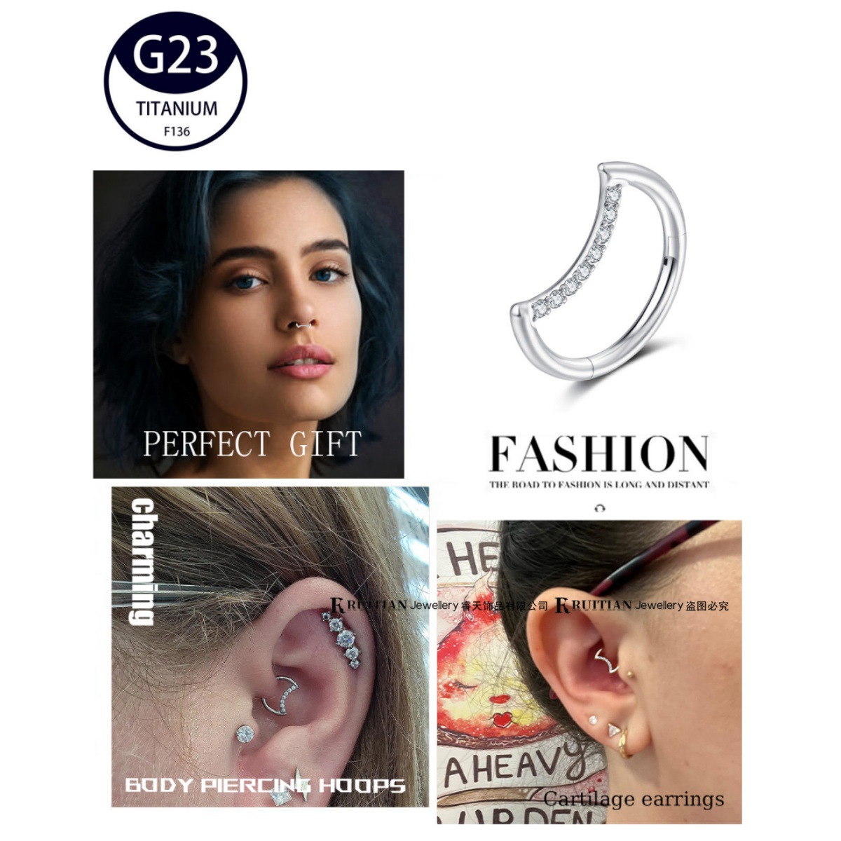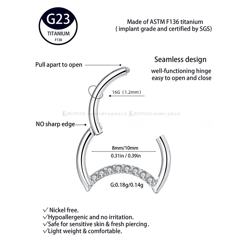 G23 titanium alloy female nose ring lip ring jewelry F136 titanium simple moon diamond tongue ring ear bone nail piercing jewelry