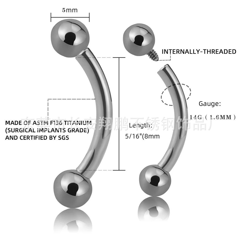 | nameOriginal | G23 titanium alloy internal thread ball eyebrow nail F136 double-headed internal thread ball eyebrow ring body piercing ear studs lip nail |