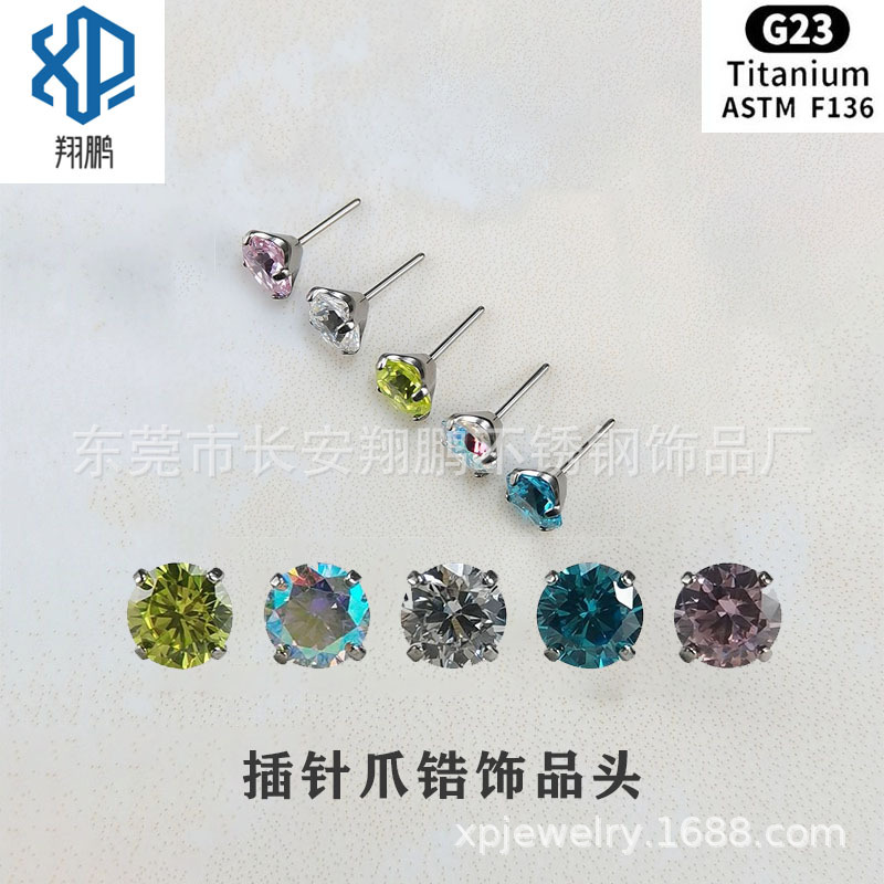 | nameOriginal | G23 titanium alloy pin claw zirconium jewelry head F136 titanium Super Flash 5A zircon pin ear studs piercing piercing jewelry |