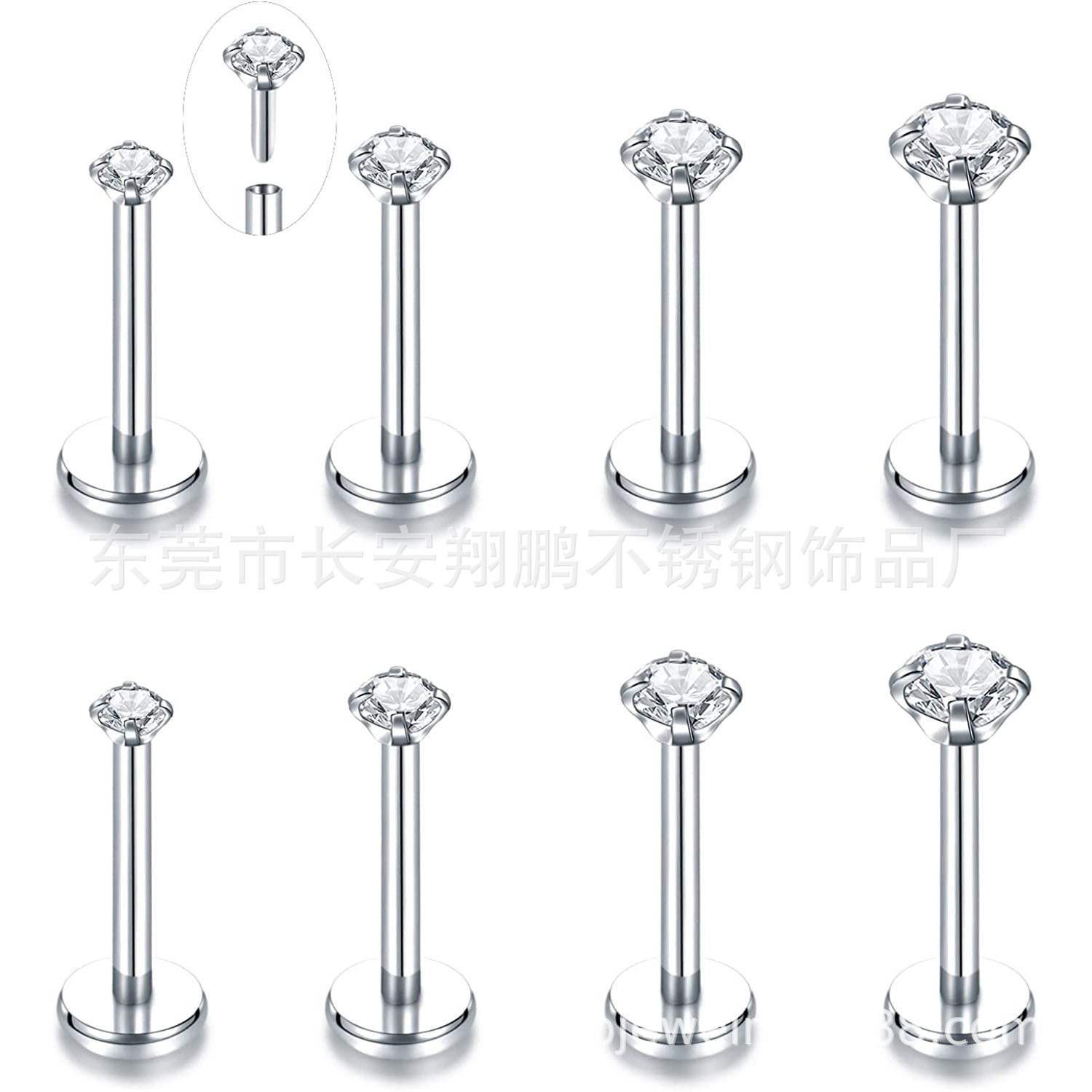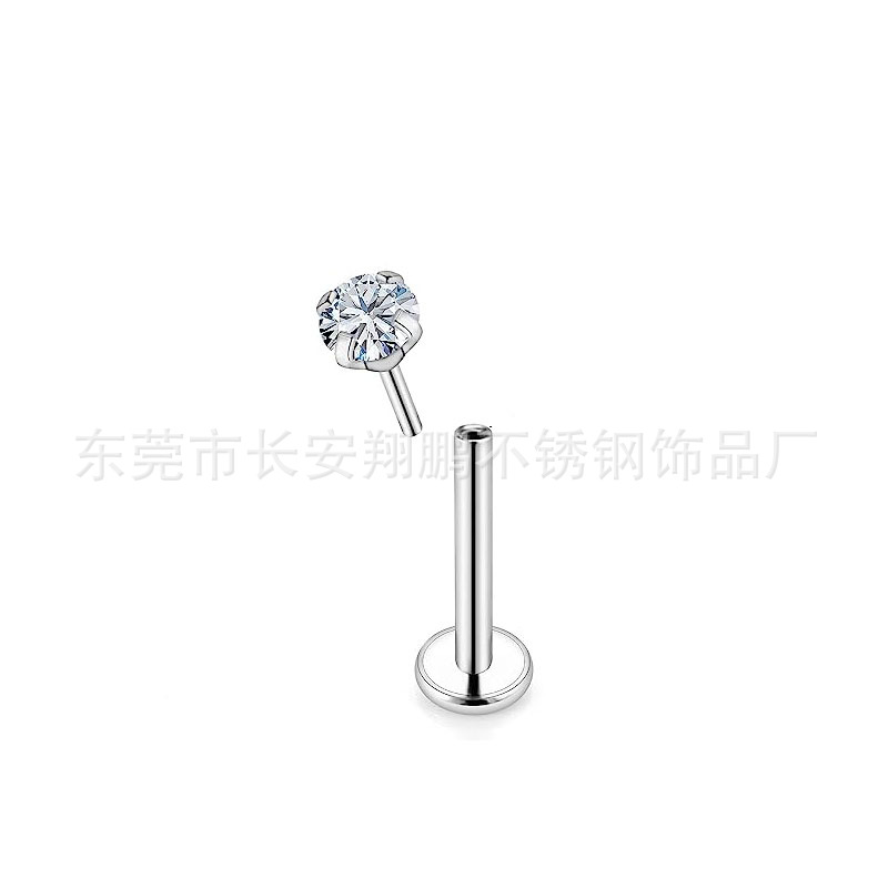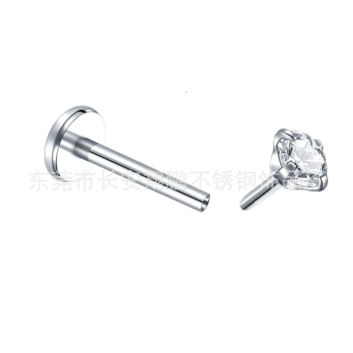 | nameOriginal | G23 titanium alloy pin zircon ear studs F-136 round zircon pin lip nail Super flash white zirconium piercing ear bone nail |