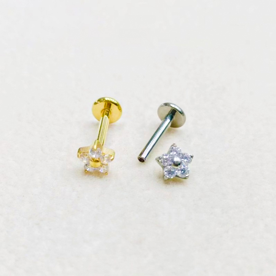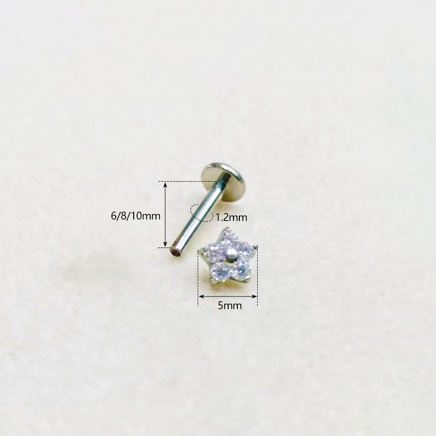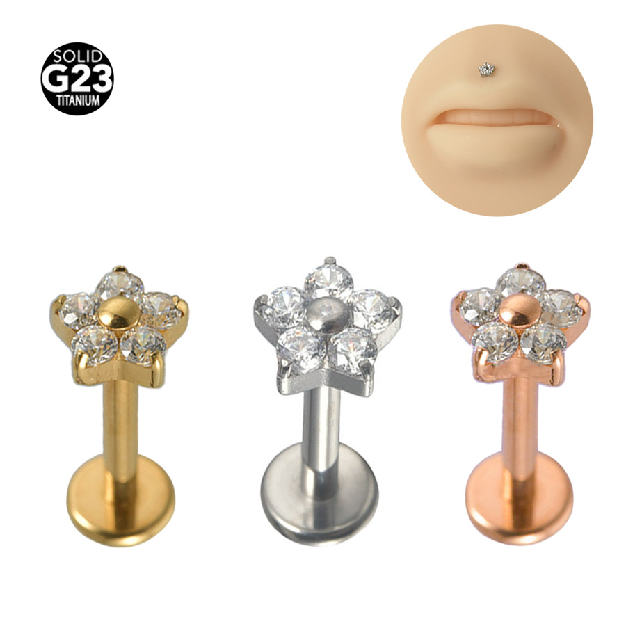 | nameOriginal | G23 titanium alloy puncture piercing jewelry zircon small flower lip nail lip ring middle nail ear worm nail ear bone nail |