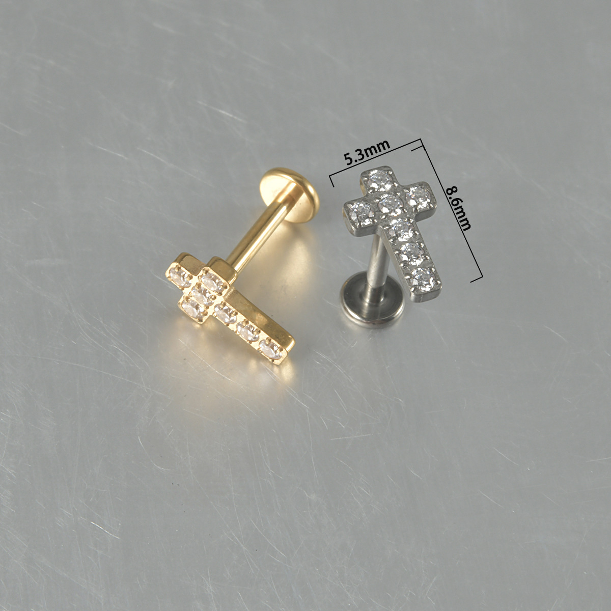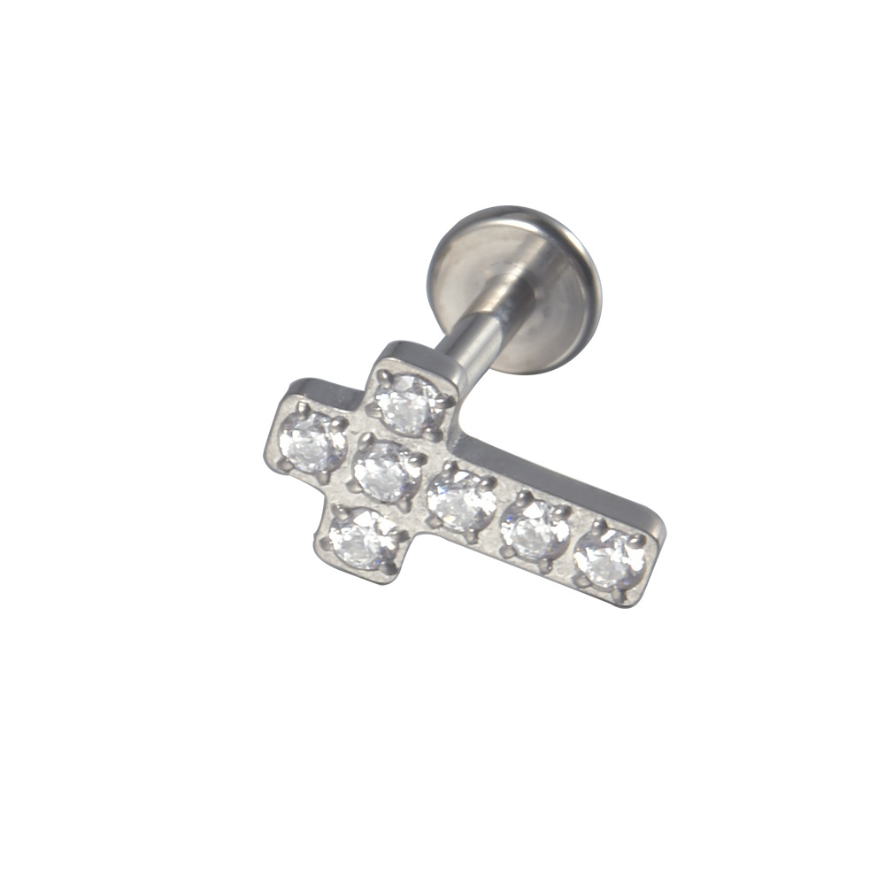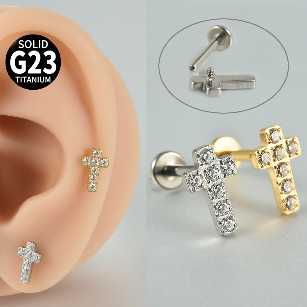 | nameOriginal | G23 Titanium Cross Internal Teeth Lip Nail F136 Titanium Inlaid Zircon Ear Bone Nail Human Puncture Internal Thread Ear Nail |