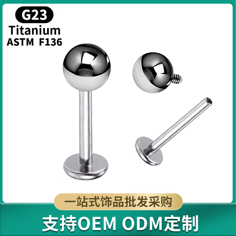 G23 titanium F-136 inner tooth lip nail round ball tongue nail flat Rod ear studs titanium alloy body piercing jewelry
