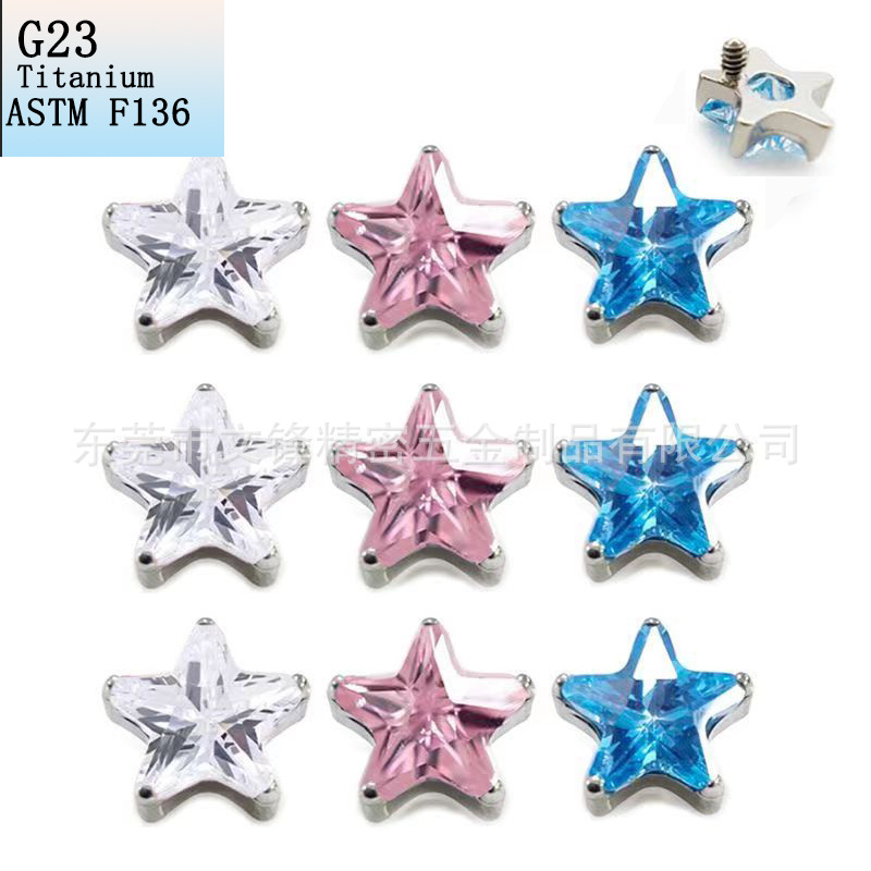 | nameOriginal | G23 titanium five-pointed star zircon earnail lip nail star F136 titanium alloy human body puncture jewelry ear bone nail |
