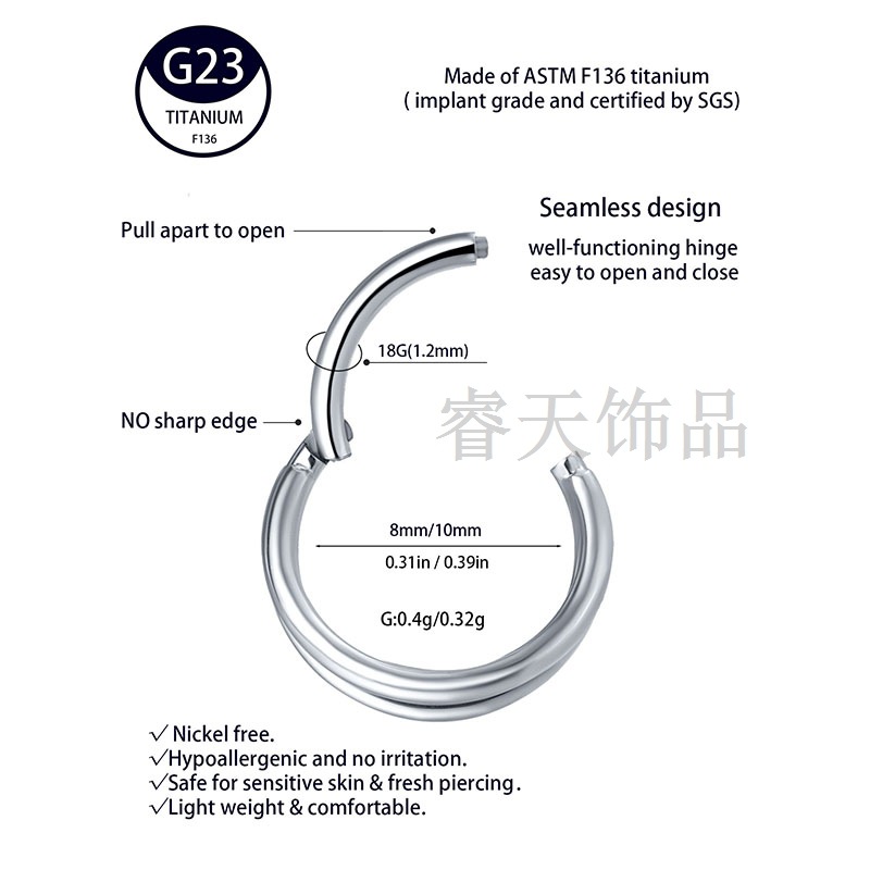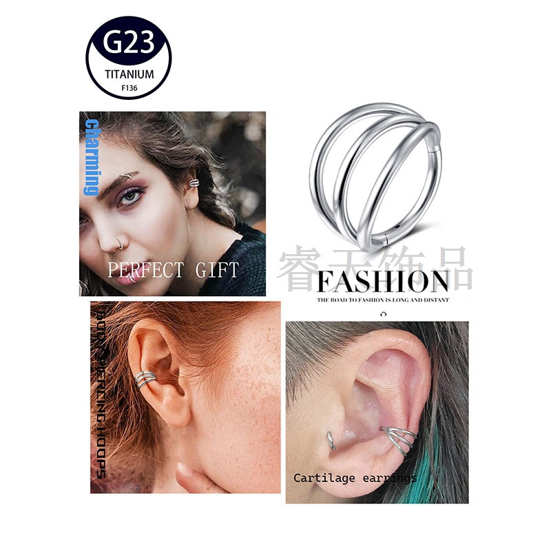 | nameOriginal | G23 titanium three-ring female nose ring tongue nail jewelry F136 titanium fashion European and American human body piercing lip ring breast ring wholesale |