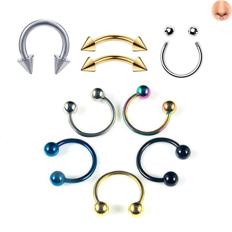 G23 Titanium Titanium External Teeth Cone Ball Horseshoe Rod Nose Ring Nose Stud Earrings C Rod Body Piercing Jewelry
