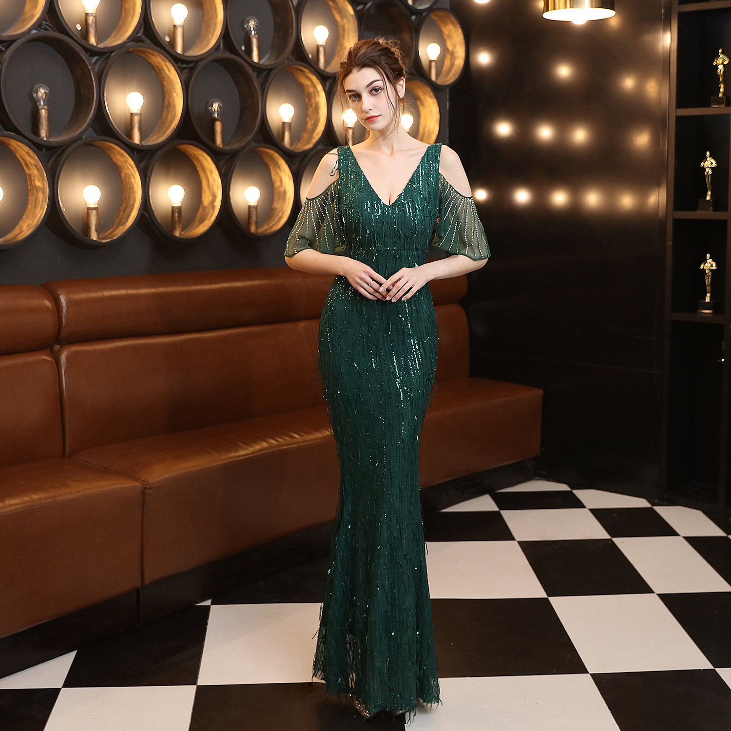 | nameOriginal | GA18135 Tassel Polyester Beaded Fish Tail Banquet Dress Elegant Elegant Cyber Celebrity Host Car Model Party Dress |