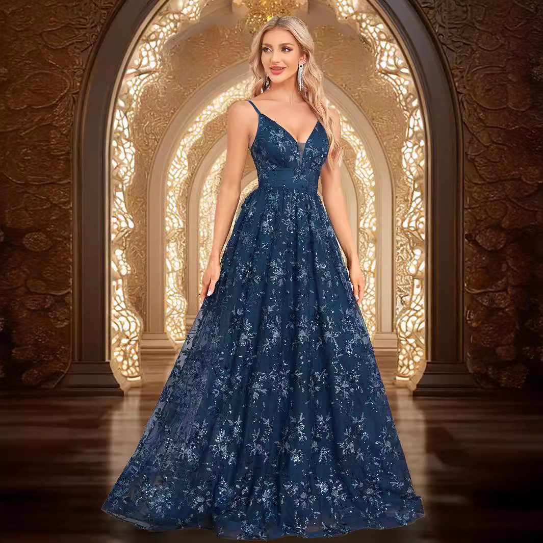 | nameOriginal | GA2305 European and American Deep V-neck Sexy Floor Dress Elegant Strap Backless Banquet Party Party dress |
