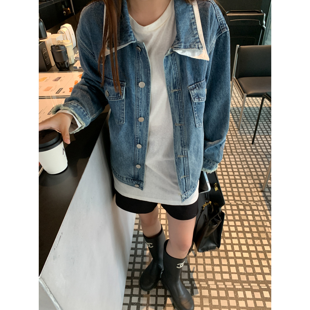 GAGD contrast color double-layer collar Denim coat women’s design fashionable fake two-piece loose all-match coat jacket women